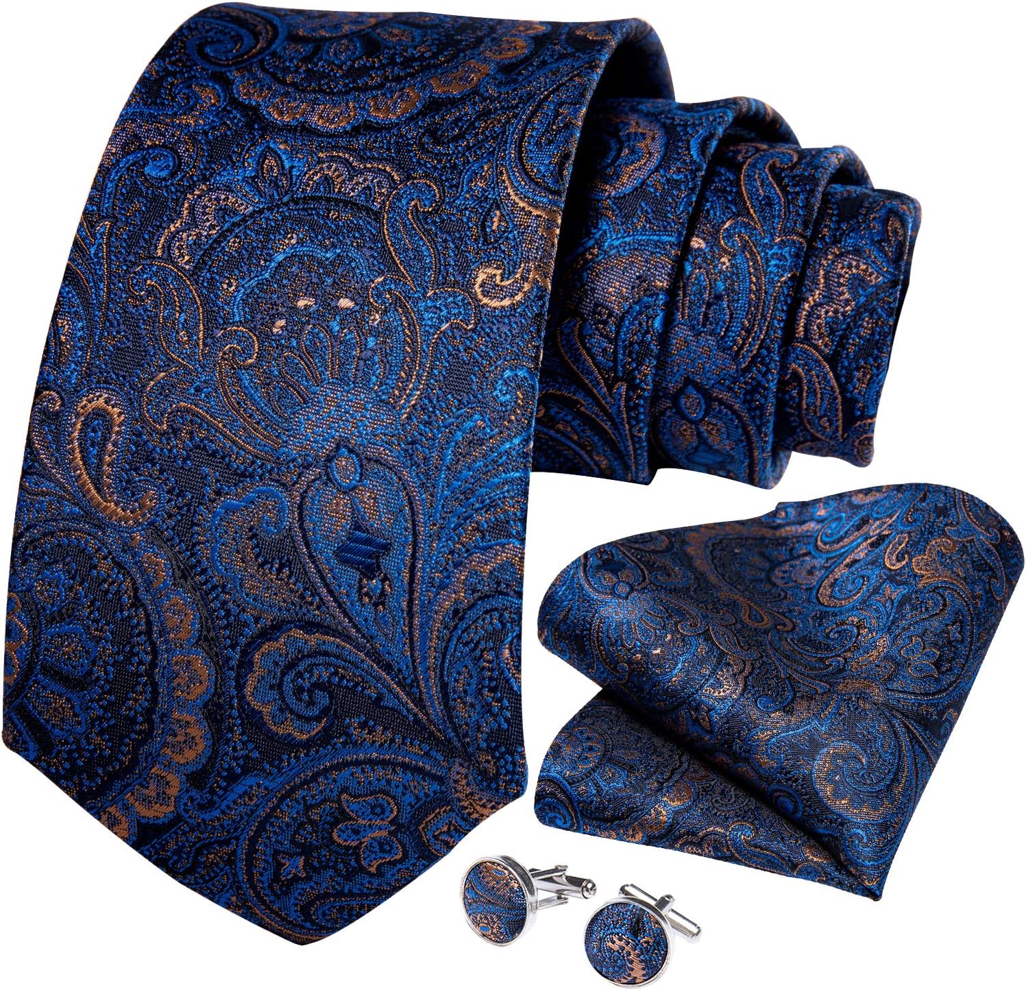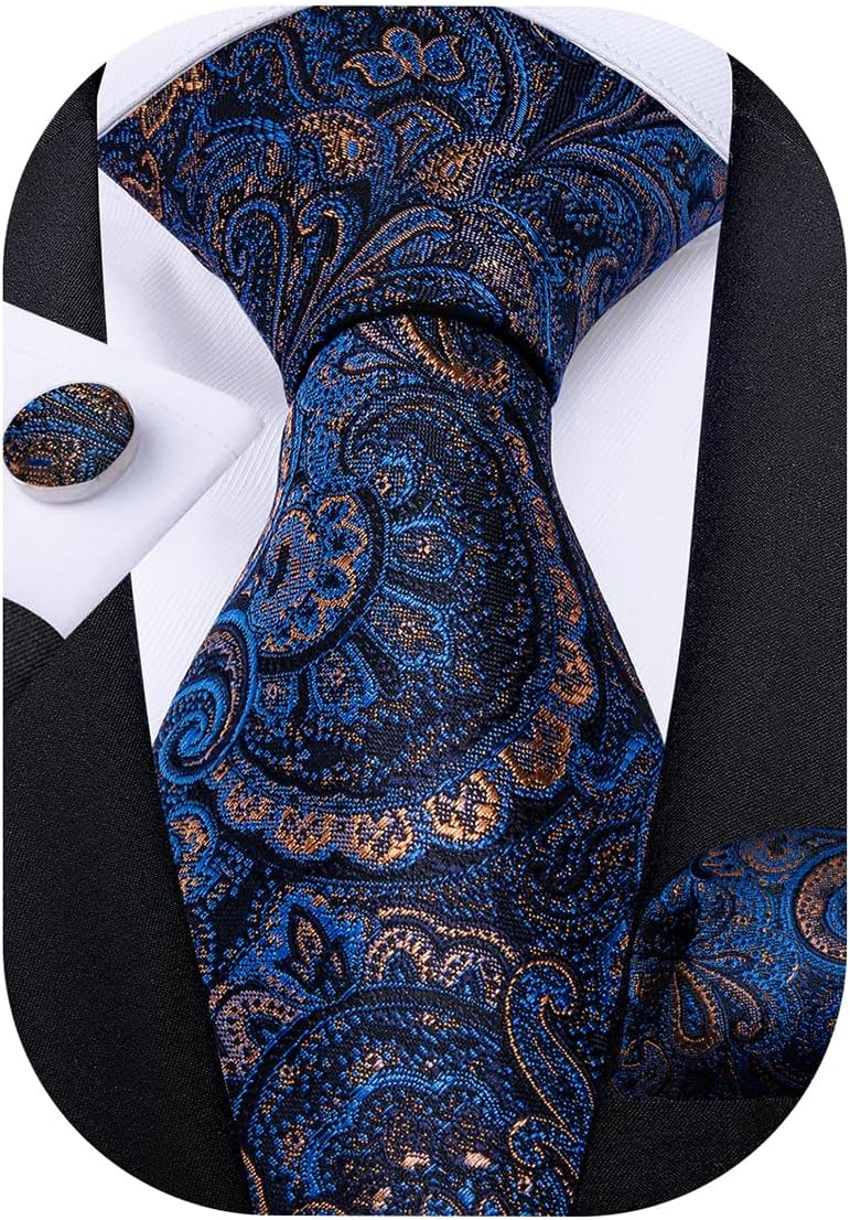 1)Package Contains:Necktie+Pocket Square+Cufflinks+Gift Box.It’s exquisite gift for men. 2)Excellent Material:2000 stitches jacquard woven craft, high-density fabric makes the tie non-deformed and soft. 3)ELEGANT DESIGN:Exquisite pattern is perfect match with suit tuxedo,make you out of ordinary in any occasion,such as:Wedding,Daily Dress, Business, Office, Meeting, Birthday, Engagement, Party, Prom.